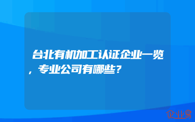 - 台北有机加工认证企业一览,专业公司有哪些?
