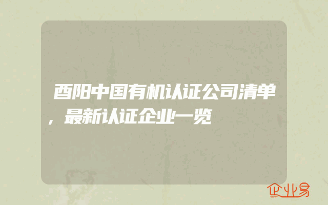 - 酉阳中国有机认证公司清单,最新认证企业一览