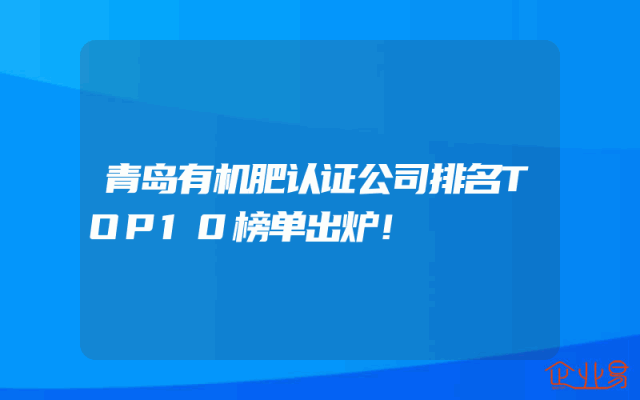 - 青岛有机肥认证公司排名TOP10榜单出炉!