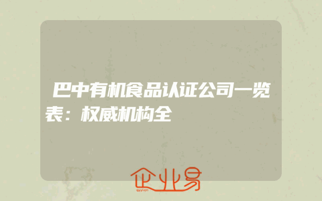 - 巴中有机食品认证公司一览表:权威机构全