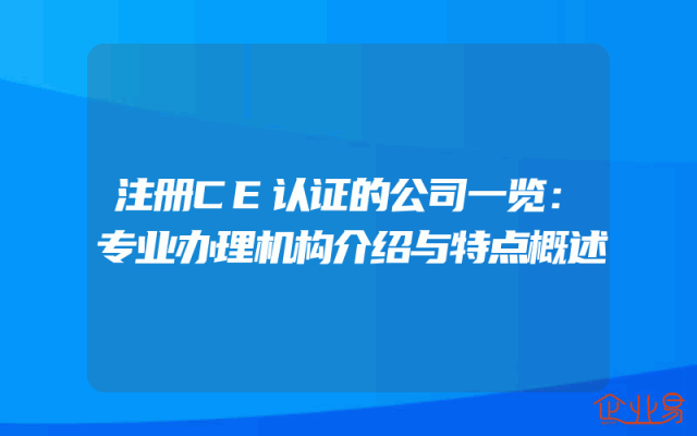 - 注册CE认证的公司一览:专业办理机构介绍与特点概述