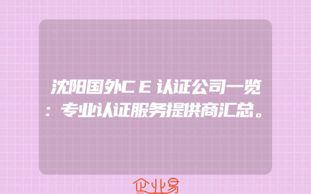 - 沈阳国外CE认证公司一览:专业认证服务提供商汇总。