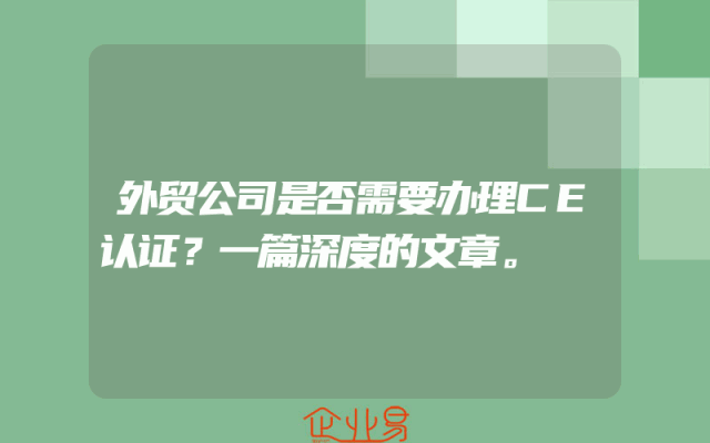 - 外贸公司是否需要办理CE认证?一篇深度的文章。