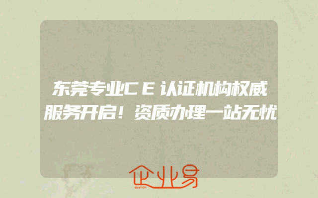 - 东莞专业CE认证机构权威服务开启!资质办理一站无忧