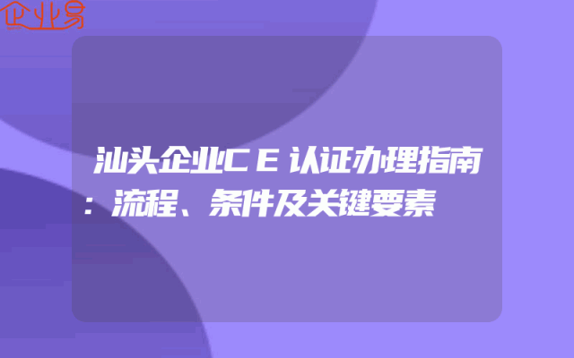 - 汕头企业CE认证办理指南:流程、条件及关键要素
