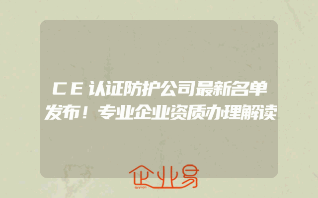 - CE认证防护公司最新名单发布!专业企业资质办理解读