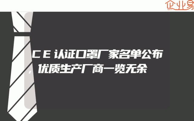- CE认证口罩厂家名单公布,优质生产厂商一览无余