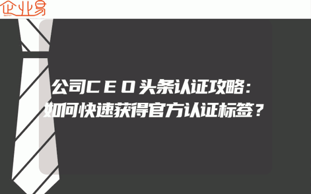 - 公司CEO头条认证攻略:如何快速获得官方认证标签?了解CEO头条认证的重要性在当今互联网时代,企业间的竞争愈发激烈,CEO头条认证标签作为企业身份的象征,不仅能够提升企业的知名度和影响力,还能为企业带来更多的商业机会和合作伙伴。因此,了解如