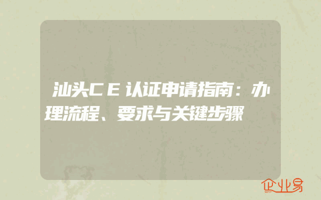 - 汕头CE认证申请指南:办理流程、要求与关键步骤