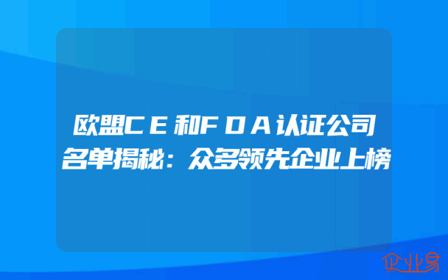 - 欧盟CE和FDA认证公司名单揭秘:众多领先企业上榜