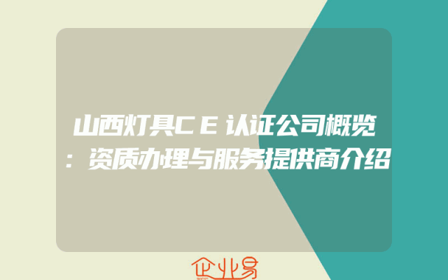 - 山西灯具CE认证公司概览:资质办理与服务提供商介绍