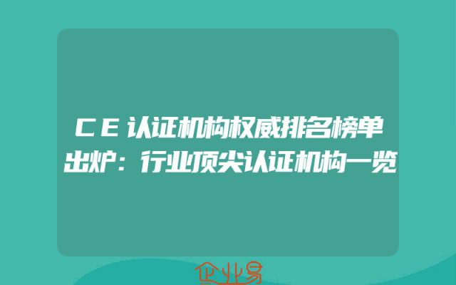 - CE认证机构权威排名榜单出炉:行业顶尖认证机构一览