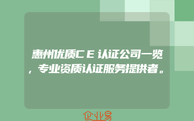 - 惠州优质CE认证公司一览,专业资质认证服务提供者。