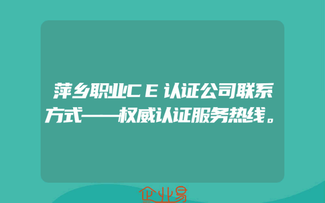 - 萍乡职业CE认证公司联系方式——权威认证服务热线。