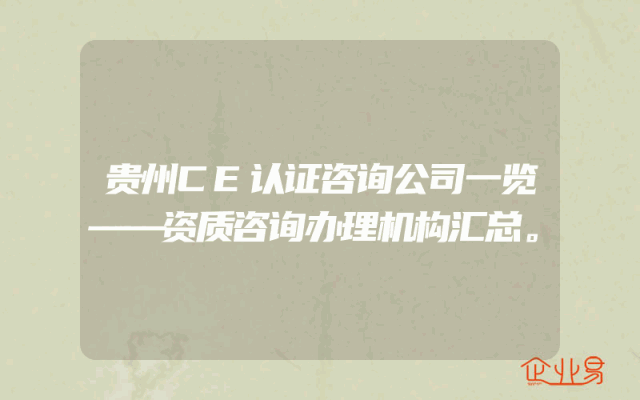 - 贵州CE认证咨询公司一览——资质咨询办理机构汇总。