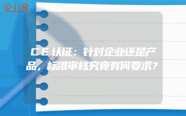 - CE认证:针对企业还是产品,标准审核究竟有何要求?