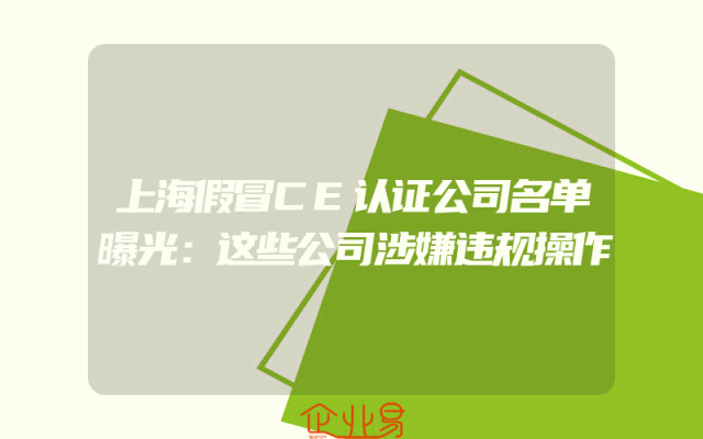 - 上海假冒CE认证公司名单曝光:这些公司涉嫌违规操作