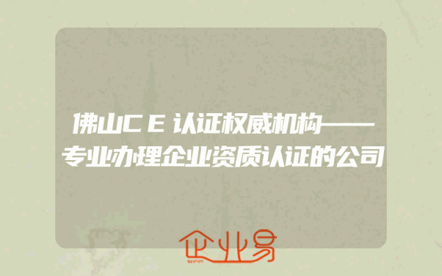 - 佛山CE认证权威机构——专业办理企业资质认证的公司