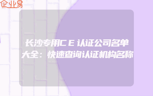 - 长沙专用CE认证公司名单大全:快速查询认证机构名称