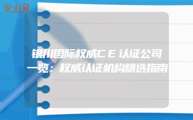 - 银川国际权威CE认证公司一览:权威认证机构精选指南