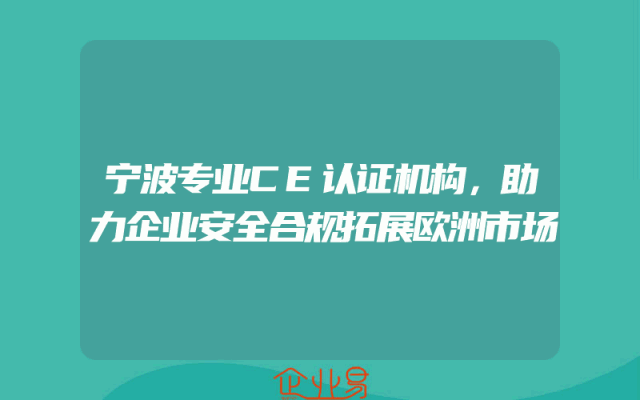 - 宁波专业CE认证机构,助力企业安全合规拓展欧洲市场
