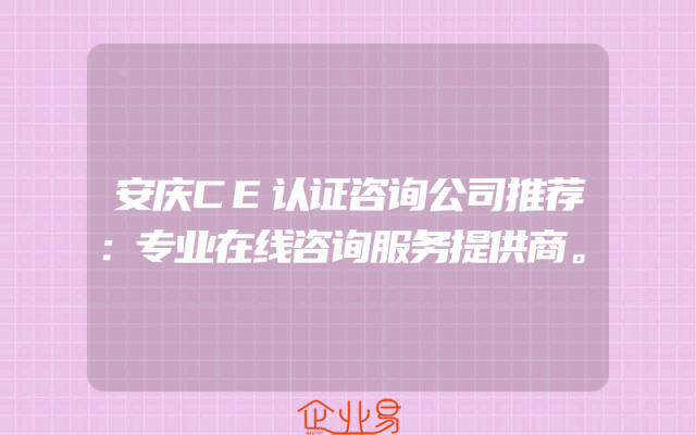 - 安庆CE认证咨询公司推荐:专业在线咨询服务提供商。