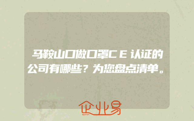 - 马鞍山口做口罩CE认证的公司有哪些?为您盘点清单。