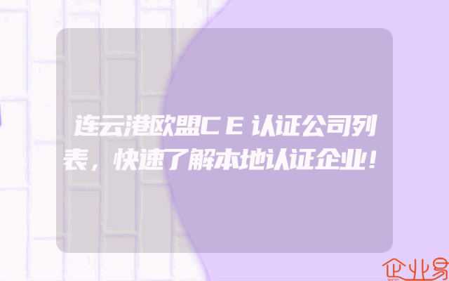 - 连云港欧盟CE认证公司列表,快速了解本地认证企业!