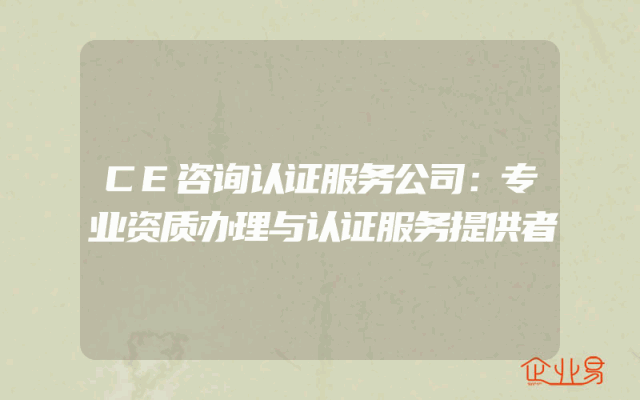 - CE咨询认证服务公司:专业资质办理与认证服务提供者