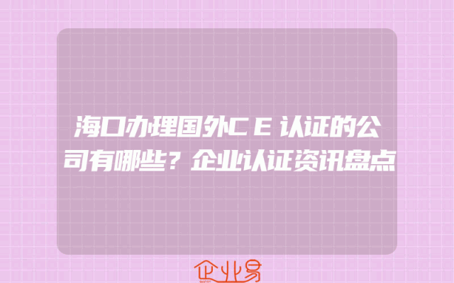 - 海口办理国外CE认证的公司有哪些?企业认证资讯盘点