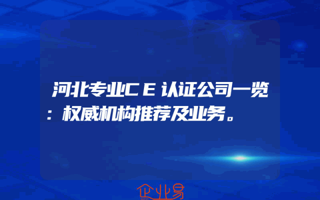 - 河北专业CE认证公司一览:权威机构推荐及业务。