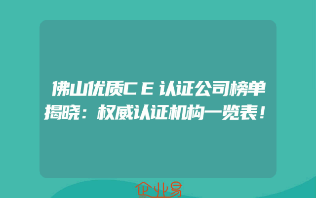 - 佛山优质CE认证公司榜单揭晓:权威认证机构一览表!