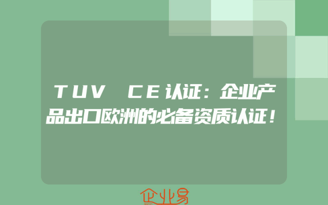 - TUV CE认证:企业产品出口欧洲的必备资质认证!