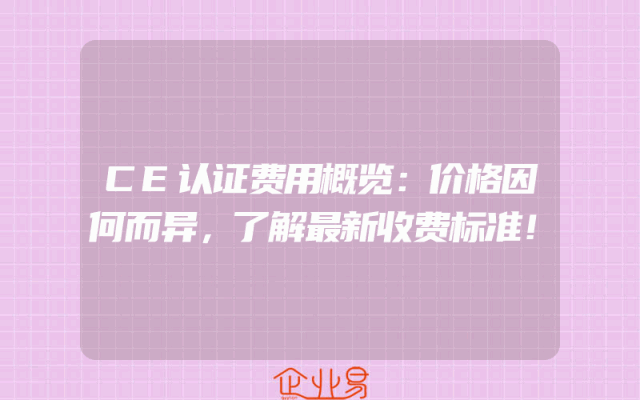 - CE认证费用概览:价格因何而异,了解最新收费标准!