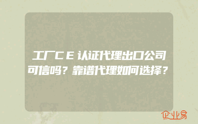 - 工厂CE认证代理出口公司可信吗?靠谱代理如何选择?