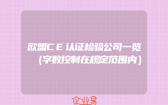 - 欧盟CE认证检验公司一览 (字数控制在规定范围内)