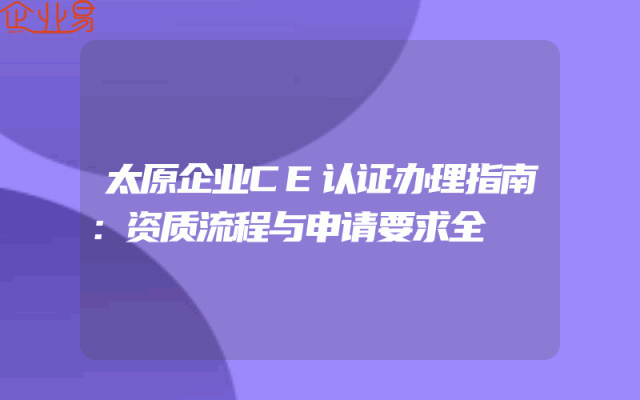 - 太原企业CE认证办理指南:资质流程与申请要求全