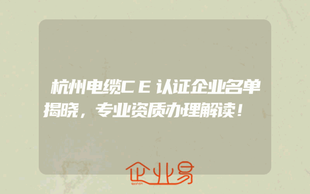 - 杭州电缆CE认证企业名单揭晓,专业资质办理解读!