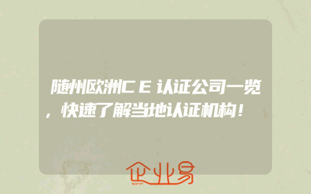 - 随州欧洲CE认证公司一览,快速了解当地认证机构!