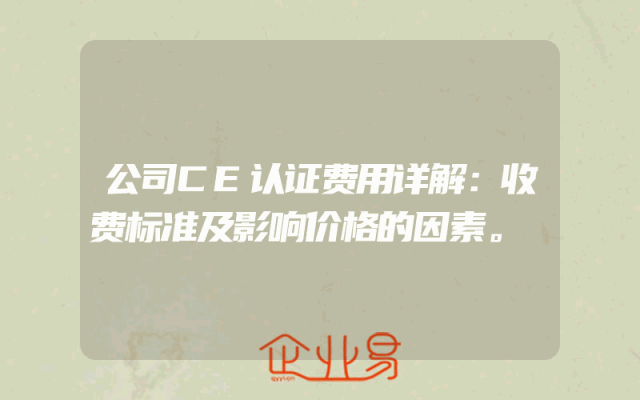 - 公司CE认证费用详解:收费标准及影响价格的因素。
