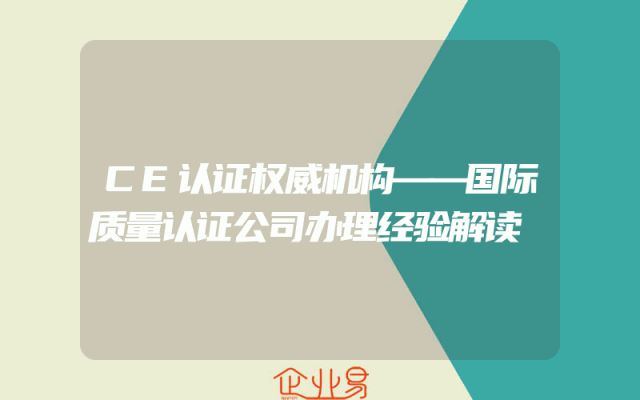 - CE认证权威机构——国际质量认证公司办理经验解读