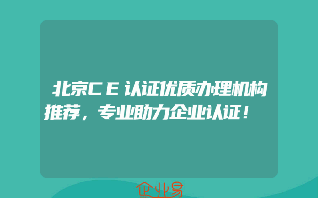- 北京CE认证优质办理机构推荐,专业助力企业认证!