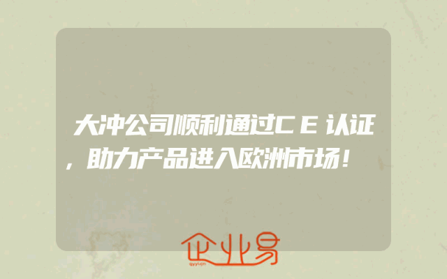 - 大冲公司顺利通过CE认证,助力产品进入欧洲市场!