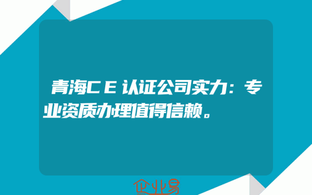 - 青海CE认证公司实力:专业资质办理值得信赖。