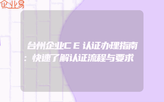 - 台州企业CE认证办理指南:快速了解认证流程与要求