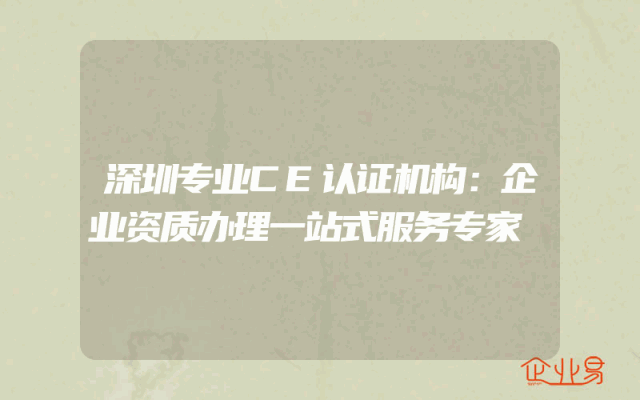 - 深圳专业CE认证机构:企业资质办理一站式服务专家