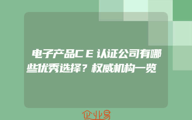 - 电子产品CE认证公司有哪些优秀选择?权威机构一览
