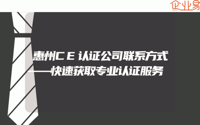 - 惠州CE认证公司联系方式——快速获取专业认证服务
