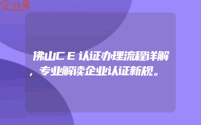 - 佛山CE认证办理流程详解,专业解读企业认证新规。