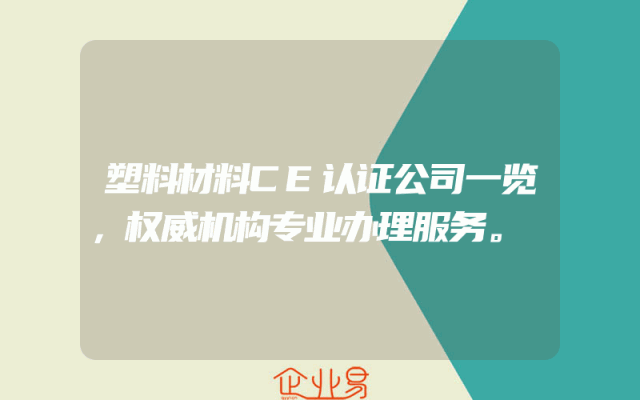 - 塑料材料CE认证公司一览,权威机构专业办理服务。